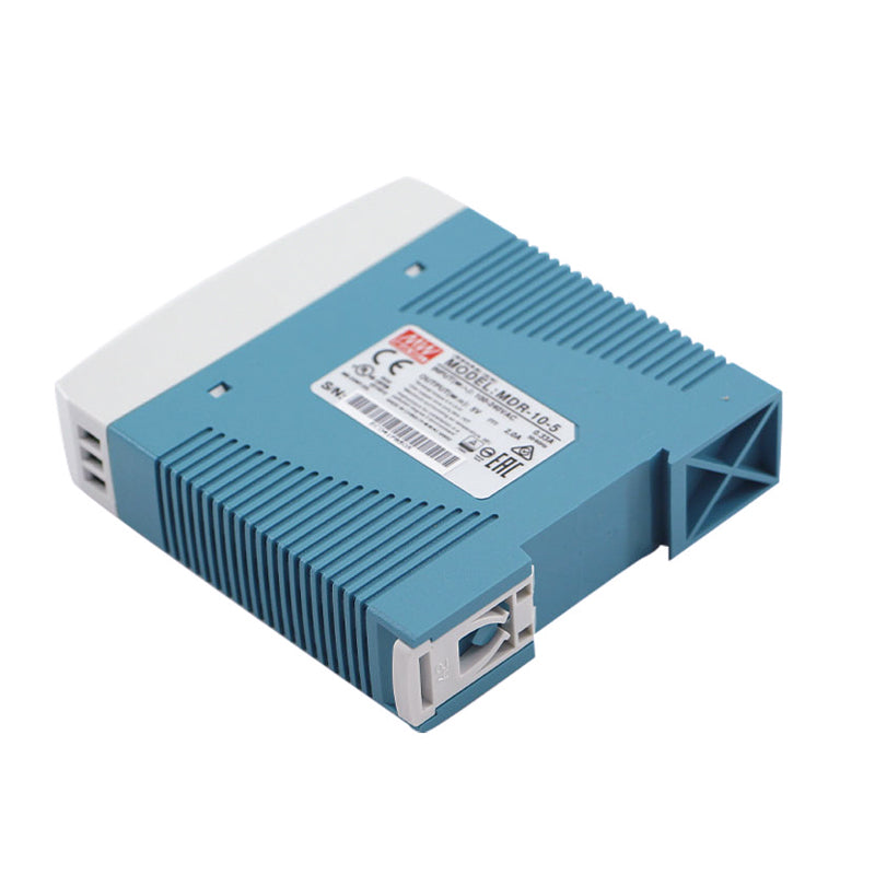 The MEAN WELL MDR-10-5 is an ultra-compact 10-watt miniature DIN rail mount power supply, delivering a stable 5V DC output at 2A for space-critical low-voltage applications. Part of the MDR series, this unit is designed for maximum space efficiency in small control panels, sensor enclosures, and digital devices. It features a universal 85-264VAC input, high efficiency, and a fanless design for silent, maintenance-free operation. With essential safety certifications (CE, cULus) and built-in overload and short circuit protection, the MDR-10-5 provides reliable control voltage for micro-PLCs, small logic controllers, digital sensors, and 5V communication modules.