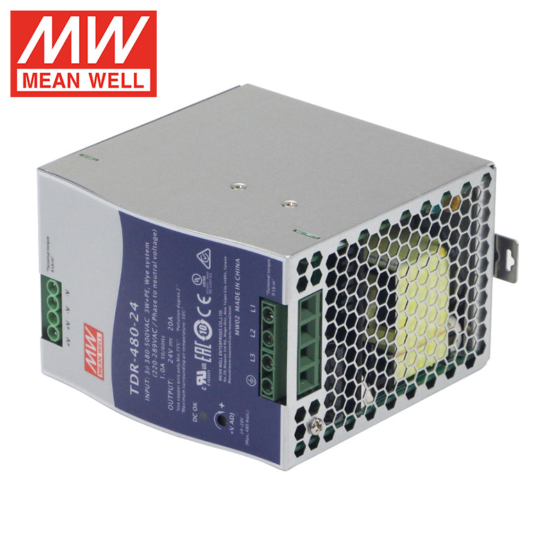 The MEAN WELL TDR-480-24 is an advanced 480-watt DIN rail mount power supply, engineered to deliver ultra-stable and digitally manageable 24V DC power at 20A for sophisticated industrial automation and control systems. Part of the high-performance TDR series, this unit integrates professional features like active PFC (>0.95), peak efficiency up to 94%, dual independent temperature-controlled fans for redundancy, and digital communication interfaces (CANbus/RS-485) for remote monitoring and control. With full international safety and EMC certifications (CE, cULus, RoHS) and comprehensive OVP, OCP, SCP, OTP protection, the TDR-480-24 provides intelligent, reliable power for large-scale PLC networks, industrial robotics, advanced CNC machinery, and smart manufacturing systems requiring connectivity and precision.