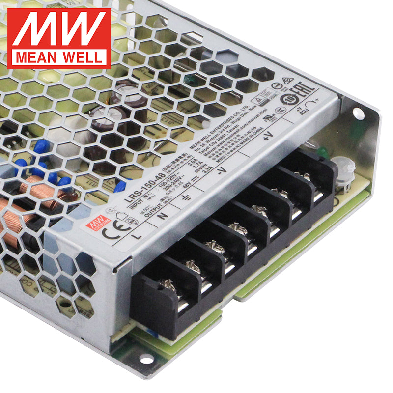 The Mean Well LRS-150-48 combines the reliability of a fixed-output industrial supply with the versatility of an adjustable bench top unit. It is the ideal solution for engineers and technicians who require a certified, robust, and tunable power supply for 48V systems, eliminating compatibility issues and enabling precise system calibration.