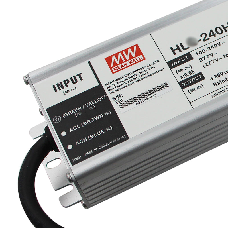 The Mean Well HL-240H-42A is a robust 240W constant voltage LED driver, providing a stable 42VDC output (5.71A). It features an ultra-wide 90-305VAC input, high efficiency up to 94%, and a fully sealed IP67-rated waterproof metal housing. Offering versatile dimming via 0-10V, PWM, and resistance control, it’s engineered for demanding outdoor, industrial, and high-power lighting installations. Certified to UL8750, CE, and IP67.