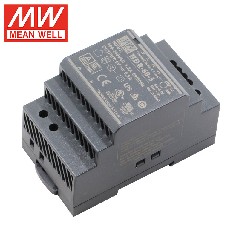The MEAN WELL HDR-60-5 is a compact yet high-current 60-watt DIN rail mount power supply, featuring a user-adjustable 5V DC output at 12A for demanding digital, logic, and computing applications requiring precise low-voltage, high-current power. Part of the flexible HDR series, this unit is engineered for industrial computing, server backplanes, digital control systems, and test environments. It features a universal 85-264VAC input, high efficiency, and typically incorporates a fan or enhanced cooling for thermal management under high-current load. With full international safety certifications (CE, cULus) and built-in overload, over-voltage, and short circuit protections, the HDR-60-5 delivers reliable and customizable power for high-density logic boards, industrial single-board computers, communication systems, and test benches.