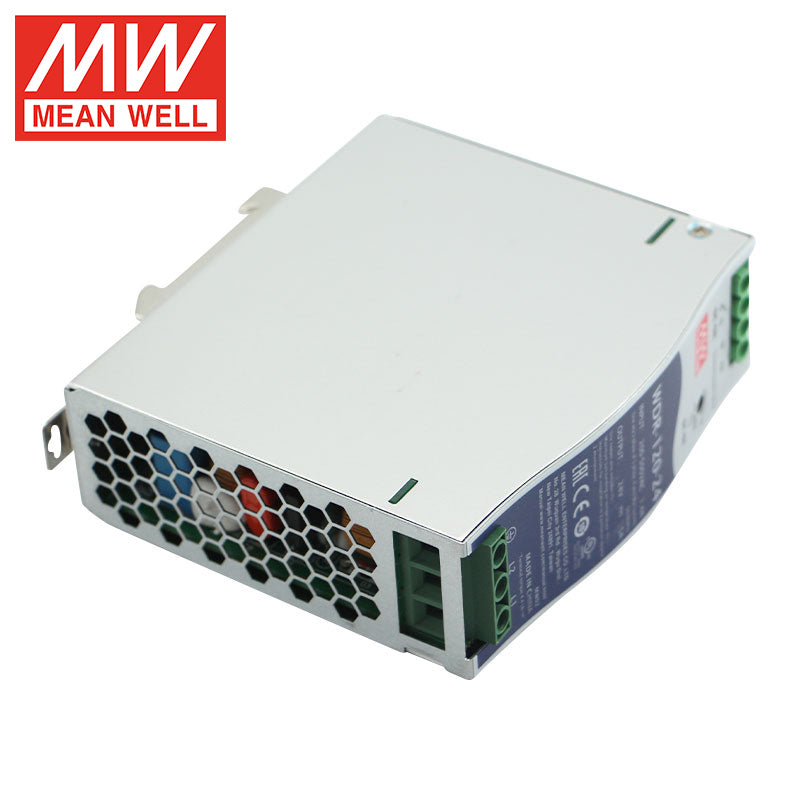 The MEAN WELL WDR-120-24 is a rugged and reliable 120-watt DIN rail mount power supply, engineered to deliver stable 24V DC power at 5A in demanding and exposed environments. Part of the waterproof WDR series, this unit features a robust IP67-rated enclosure, providing complete protection against dust ingress and temporary water immersion. Designed for outdoor, marine, wash-down, and harsh industrial applications, it includes a universal 85-264VAC input, high efficiency, and fully potted construction for superior thermal performance and resistance to shock and vibration. With essential safety certifications (CE, cULus) and built-in overload and short circuit protection, the WDR-120-24 provides dependable power for outdoor LED lighting, gate and access control systems, marine instrumentation, wastewater sensors, and any equipment operating in damp, dusty, or corrosive conditions.