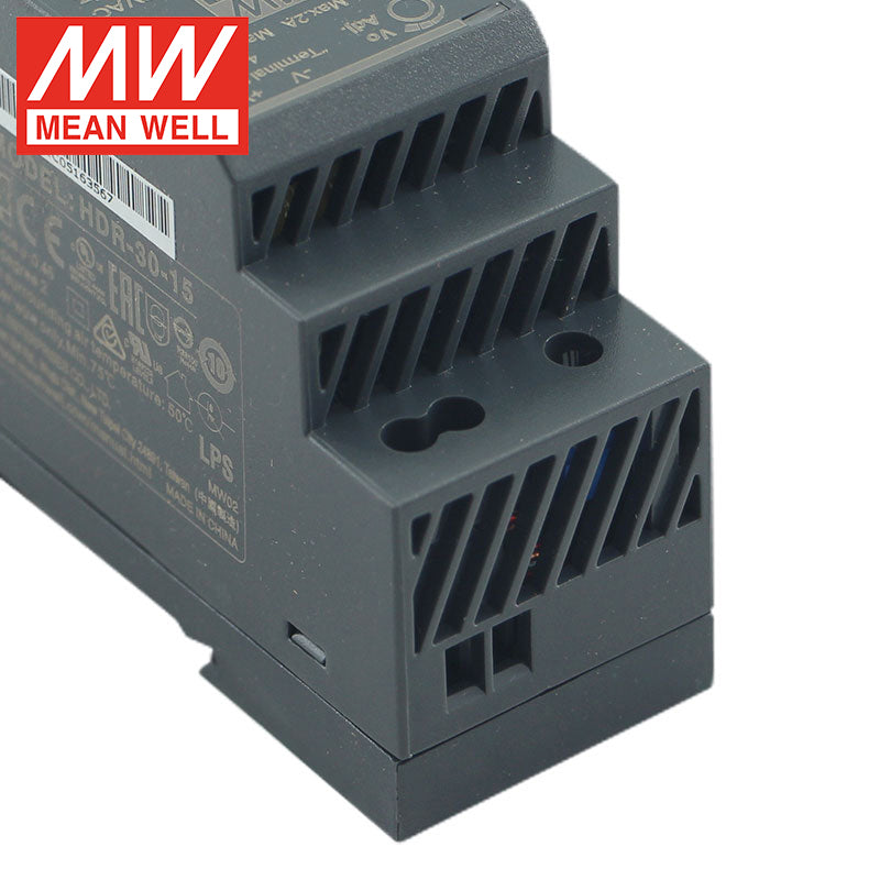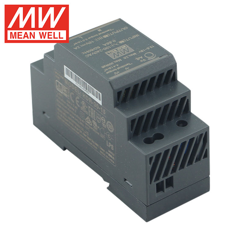 The MEAN WELL HDR-30-15 is a compact and versatile 30-watt DIN rail mount power supply, featuring a user-adjustable 15V DC output at 2A for specialized applications requiring this precise mid-range voltage. Part of the flexible HDR series, this unit is engineered for industrial control, professional audio, and specialized equipment where exact 15V power is essential. It features a universal 85-264VAC input, high efficiency, and a fanless convection-cooled design for silent, maintenance-free operation. With full international safety certifications (CE, cULus) and built-in overload, over-voltage, and short circuit protections, the HDR-30-15 delivers reliable and customizable power for specialized controllers, measurement instruments, professional audio components, and other 15V optimized devices.