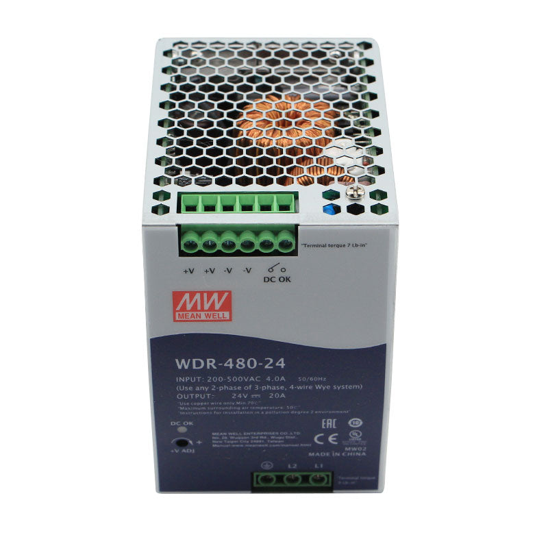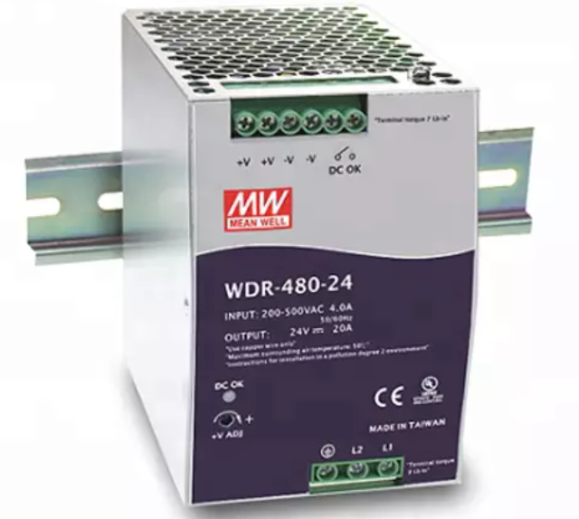 The MEAN WELL WDR-480-24 is a high-power, ultra-rugged 480-watt DIN rail mount power supply, engineered to deliver stable and reliable 24V DC power at 20A in the most demanding and harsh industrial environments. As part of the waterproof WDR series, this unit is built with a robust IP67-rated enclosure, ensuring complete protection against dust ingress and temporary water immersion. Designed for extreme outdoor, marine, wash-down, and heavy industrial applications, it features a universal 85-264VAC input, high efficiency, and fully potted construction for unmatched thermal management, shock, and vibration resistance. With essential safety certifications (CE, cULus) and built-in overload and short circuit protection, the WDR-480-24 provides dependable power for large outdoor LED displays, port machinery, mining equipment, food & beverage processing plants, and any critical system exposed to severe conditions.