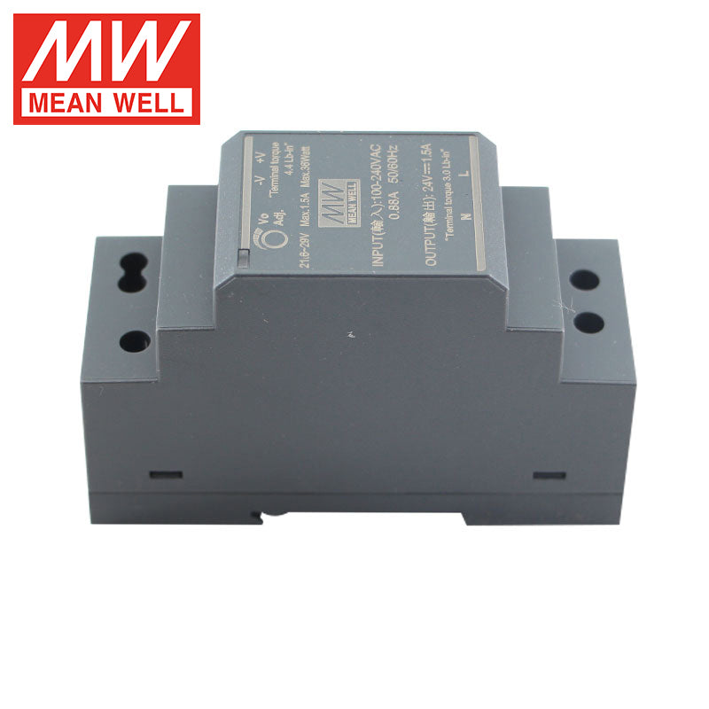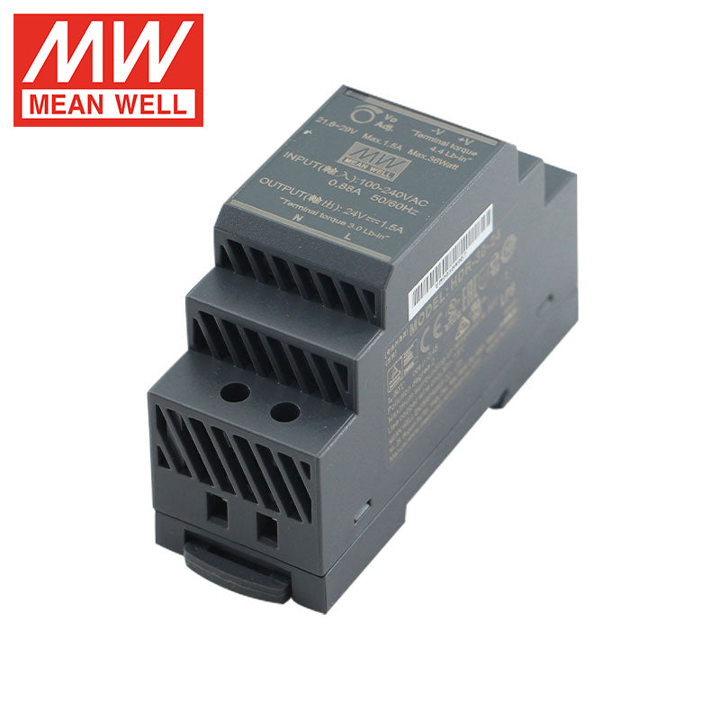 The MEAN WELL HDR-30-24 is a compact and versatile 30-watt DIN rail mount power supply, featuring a user-adjustable 24V DC output (typically within a range like 19-29V) at 1.5A for applications requiring precise higher voltage control. Part of the adaptable HDR series, this unit is engineered for small to medium industrial control panels, instrumentation, and professional equipment. It features a universal 85-264VAC input, high efficiency, and a fanless convection-cooled design for silent, maintenance-free operation. With full international safety certifications (CE, cULus) and built-in overload, over-voltage, and short circuit protections, the HDR-30-24 delivers reliable and customizable power for PLCs, sensors, small actuators, measurement devices, and various 24V control circuits.