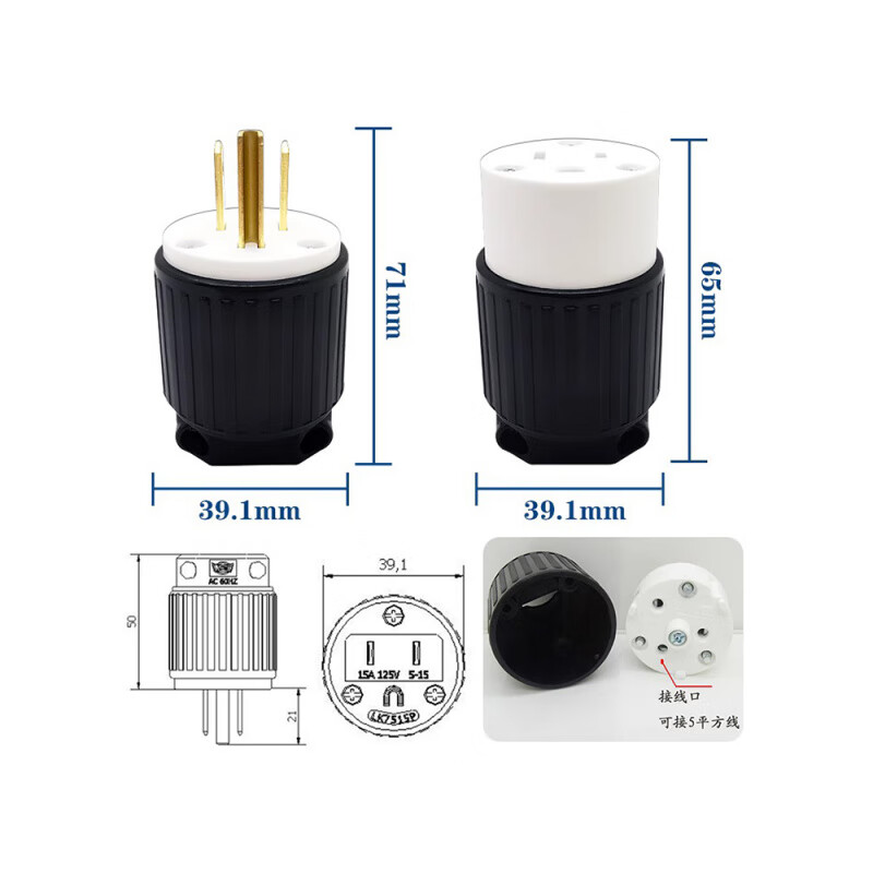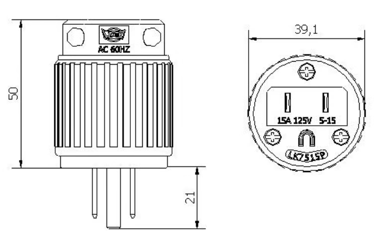Male plug (straight blade – attaches to cord end)
