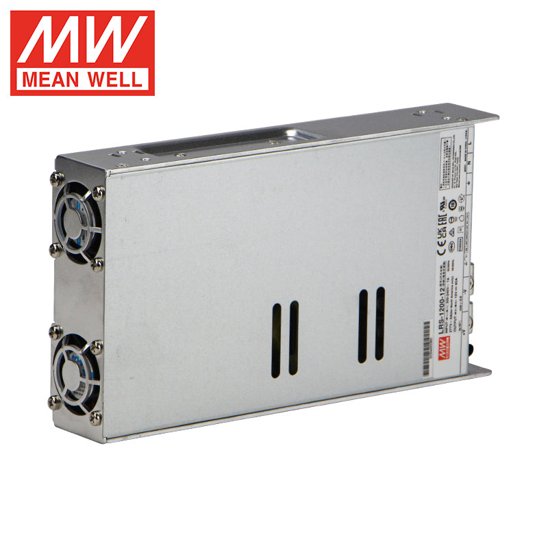 The Mean Well LRS-1200-12 is a high-density, industrial-grade switching power supply engineered to deliver massive 12V DC power at up to 100A, providing 1200 watts of continuous, reliable output for the most demanding applications. Designed for data centers, industrial automation, and large-scale professional installations, this unit features a universal 85‑264VAC input, high efficiency up to 90%, and dual temperature‑controlled fans for optimal thermal management under extreme loads. With full safety certifications (UL, TUV, CB, CE) and comprehensive OVP, OCP, SCP, and OTP protection, the LRS‑1200‑12 is built to power high-density server racks, large LED video walls, telecommunications infrastructure, industrial electrolysis/plating systems, and high-performance computing clusters requiring unprecedented 12V current delivery.