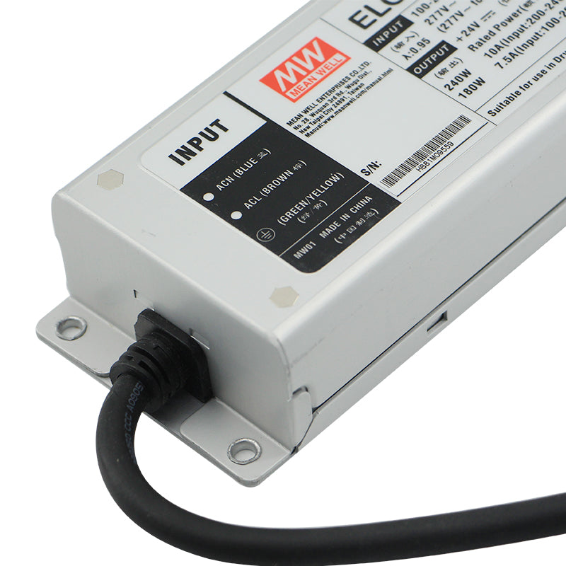 The Mean Well ELG-240-24A-3Y is a high-capacity, professional-grade constant voltage LED driver engineered to deliver a powerful and stable 24VDC output for the most demanding large-scale lighting installations. Featuring advanced 3-in-1 dimming compatibility (0-10V, PWM, and Resistance), it provides ultimate control flexibility for smooth, flicker-free dimming from 100% down to off, making it perfect for sophisticated architectural projects, tunable white systems, high-end retail environments, and large-scale event lighting. Encased in a rugged IP67-rated waterproof and dustproof enclosure, this driver is built to withstand the harshest indoor and outdoor environments, ensuring uninterrupted performance. It offers exceptional efficiency (up to 94%), active Power Factor Correction (PF>0.95) for energy savings, and comprehensive protection against short-circuit, overload, over-voltage, and over-temperature. Fully compliant with Class 2/SELV safety standards, the ELG-240-24A-3Y is the premier power solution for high-current 24V LED applications—such as extensive linear runs, high-density module arrays, and large-format fixtures—that require immense power, versatile dimming, and industrial-grade durability.