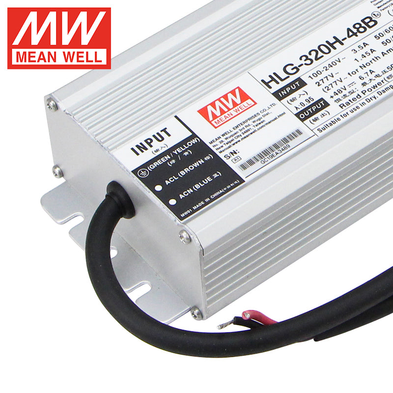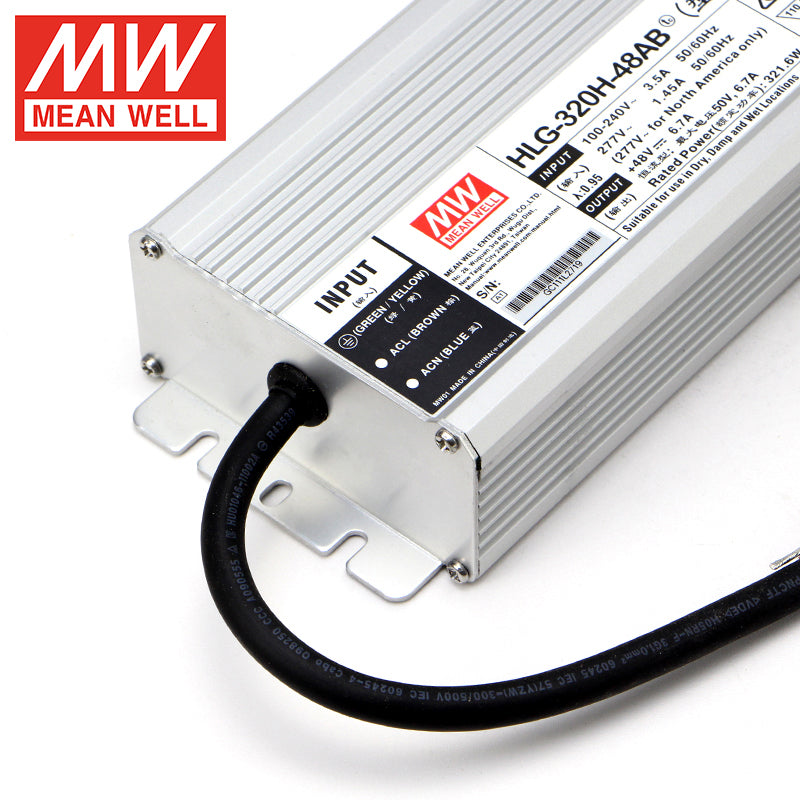 Input Voltage:90 ~ 305VAC 127 ~ 431VDC Output Current:6.7A Output Voltage:48V Model Number:HLG-320H-48 Brand Name:MEAN WELL Place of Origin:Zhejiang, China Application:Industrial Equipment, Industry Efficiency:95%, 95% Output Frequency:47 ~ 63HZ Output Type:Single Product Name:HLG-320H-48 Warranty:7 years Type:led driver Feature:universal AC input full range DC Voltage:48V Rated Current:6.7A Rated Power:321.6w Voltage Adjust.Range:43-52v Hold Up Time (Typ. ):15ms/230vac
