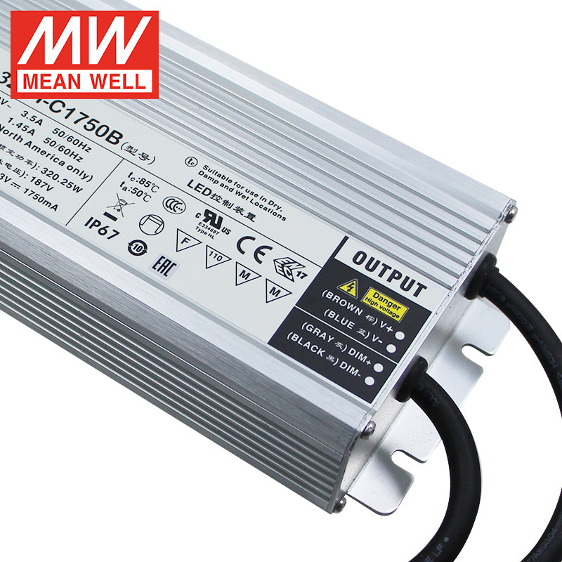 MeanWell Waterproof LED Driver HLG-320H-C1750B 320W Dimmable 1750mA CC Power Supply