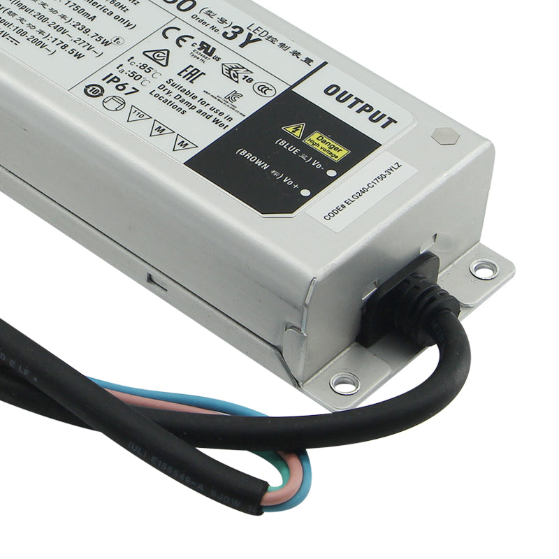 The MEAN WELL ELG-240-C1400A is a high-performance, 240-watt constant current LED driver engineered to deliver a stable 1400mA output for professional, high-intensity lighting applications. Featuring 0-10V / PWM dimming compatibility, it enables smooth, flicker-free brightness control, making it ideal for demanding environments such as architectural facades, stadium and arena lighting, high-output industrial floodlights, and stage/studio installations. Encased in a rugged IP67-rated waterproof and dustproof enclosure, this driver is built to withstand harsh indoor and outdoor conditions, ensuring reliable performance. With high efficiency (up to 94%), active Power Factor Correction (PF>0.95) for energy efficiency, and comprehensive protection against short-circuit, overload, over-voltage, and over-temperature, it guarantees safety and durability. Fully compliant with Class 2/SELV safety standards, the ELG-240-C1400A is the robust and reliable power solution for driving high-power COB LEDs, LED arrays, and specialized fixtures that require precise constant current regulation, professional dimming, and maximum environmental resilience.