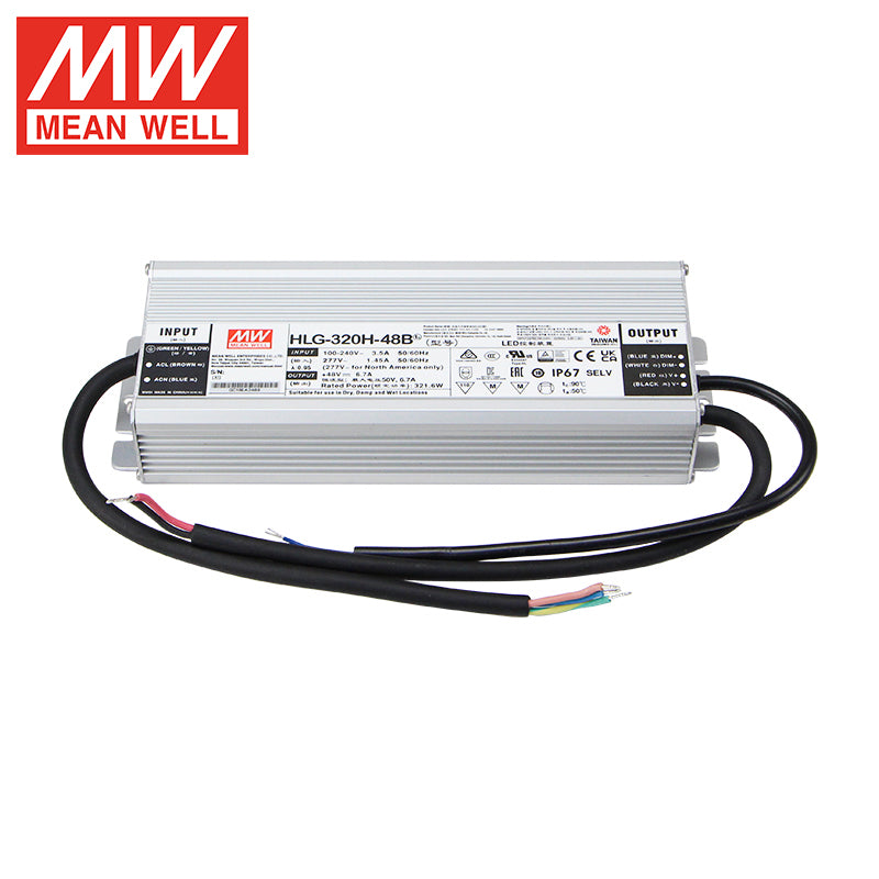 The MeanWell HLG-320H-48B is a flagship 320-watt 48-volt constant voltage/current LED driver engineered for the most demanding professional applications where immense light output and precise, smooth dimming control are non-negotiable. As a -B model in the high-power HLG-H series, it features full-range dimming (typically 100%-10%) via 0-10V, PWM, or resistance control, enabling flawless light scene management from maximum illumination to significant energy-saving levels. Delivering substantial 320W of power at an efficient 48V, it can drive extensive arrays of high-brightness LEDs, multiple high-output fixtures, or complex lighting systems with a single, highly efficient source. Housed in a rugged, IP65/IP67 protected metal casing and backed by a 7-year warranty, this driver sets the standard for professional-grade, tunable lighting in mega-scale venues and critical installations.