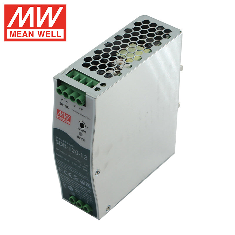 The MEAN WELL SDR-120-12 is a robust 120-watt enclosed switching power supply, engineered to deliver a stable and high-current 12V DC output at 10A for demanding industrial and commercial applications. As part of the SDR series, this unit combines reliable performance with a compact, efficient design. It features a universal 85-264VAC input, high efficiency up to 89.5%, and a fanless metal enclosure for silent, maintenance-free operation. With full international safety certifications (UL, TUV, CB, CE) and comprehensive protection against overload, over-voltage, short circuit, and over-temperature, the SDR-120-12 is an ideal power source for LED video walls, security DVR systems, industrial computing, telecommunications racks, and high-power 12V equipment.