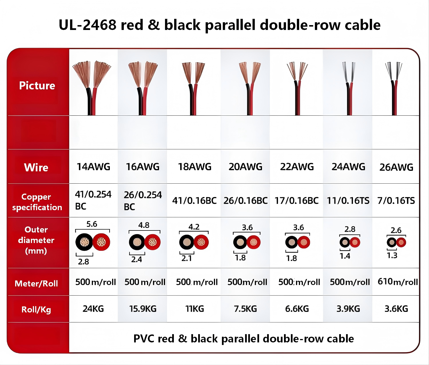 | Signage / Display | LED sign power cable, 20AWG parallel wire, double-row cable for signage |