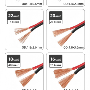 | Audio / Speakers | UL2468 speaker wire, 16AWG zip cord, parallel speaker cable, red black audio wire |