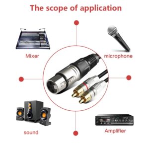 Professional Audio Cable – XLR Female to Dual RCA Male, Converts Balanced Mono Signal to Unbalanced Stereo for Interface, Mixer, or DI Box Connections.