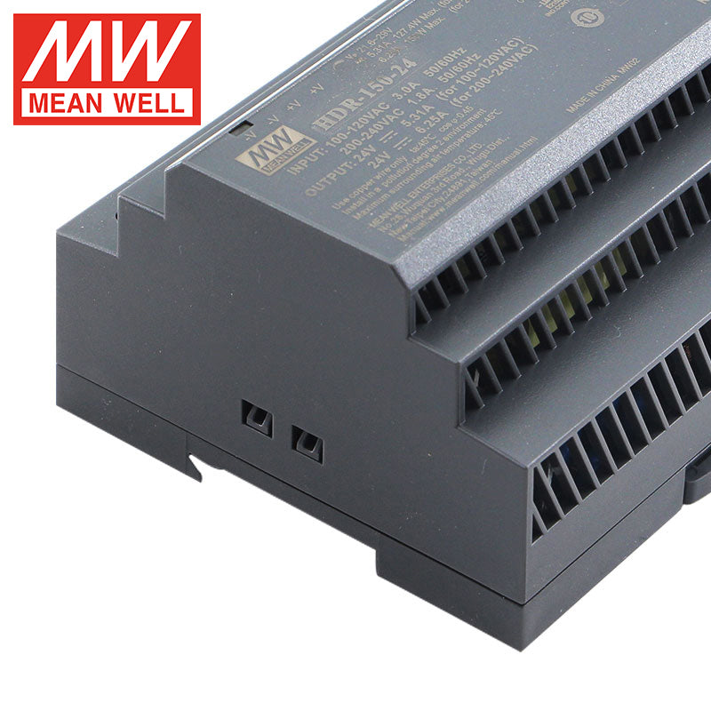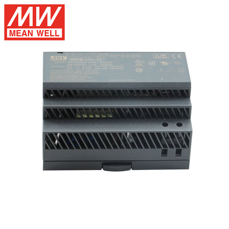 The MEAN WELL HDR-150-24 is a robust and versatile 150-watt DIN rail mount power supply, featuring a user-adjustable 24V DC output (typically from ~19V to ~29V) at 6.3A for precise application matching. Part of the HDR series renowned for its voltage flexibility, this unit is engineered for demanding industrial control and automation environments. It features a universal 85-264VAC input, high efficiency up to 90%, and a convection or fan-cooled design (model dependent) for reliable operation. With full international safety certifications (CE, cULus) and built-in overload, over-voltage, and short circuit protections, the HDR-150-24 provides dependable and customizable power for PLC systems, industrial sensors, motor controllers, test benches, and professional equipment requiring exact voltage settings.