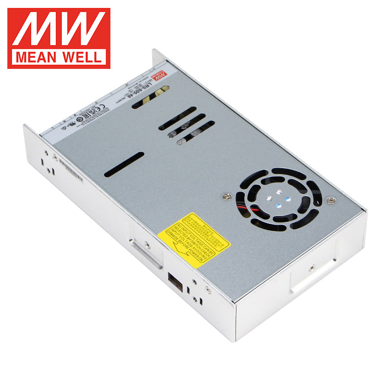 The Mean Well LRS-600-48 is a heavy-duty, high-efficiency industrial switching power supply engineered to deliver stable and reliable 48V DC power at up to 12.5A for a total of 600 watts. Designed for demanding high-voltage applications in telecommunications, industrial automation, and professional installations, this unit features a universal 85‑264VAC input, high efficiency up to 91.5%, and an integrated temperature‑controlled fan for optimal thermal management under continuous full load. With full UL, TUV, CB, and CE safety certifications and comprehensive OVP, OCP, SCP, and OTP protection, the LRS‑600‑48 ensures robust and fail‑safe operation. It is an ideal power source for large Power over Ethernet (PoE++) switches, industrial motor drives, professional audio/video broadcasting equipment, high‑power LED displays, and telecommunications base stations.