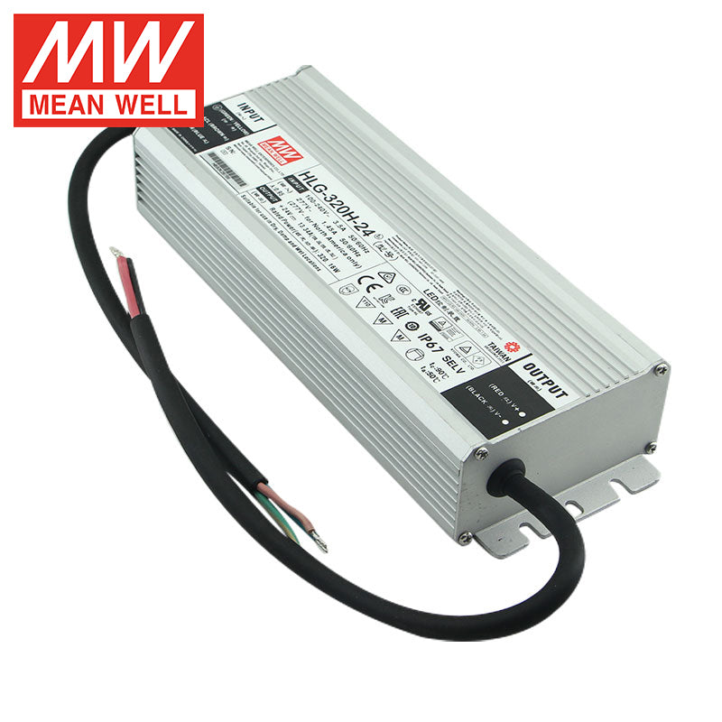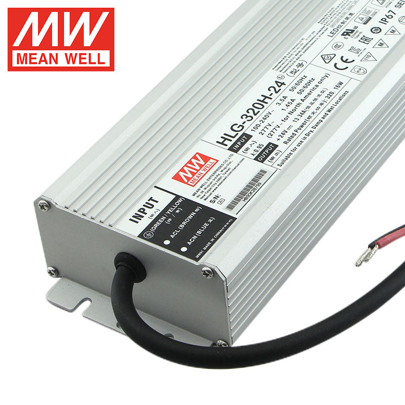 Input Voltage:90~305VAC / 127~431VDC Output Current:13.3A Output Voltage:24 V Model Number:HLG-320H-24 Brand Name:Mean Well Place of Origin:Guangdong, China Output Frequency:47~63Hz Output Type:Single Product:LED Driver Dimension:252*90*43.8mm (L*W*H) IP Rating: IP67 Efficiency:95% Warranty:7 years Shell:Aluminum Case Voltage Adjust.Range:21 ~ 26V Current Adj. Range:6.67 ~ 13.34A Protections:Short circuit / Overload / Over voltage/ Over temperature