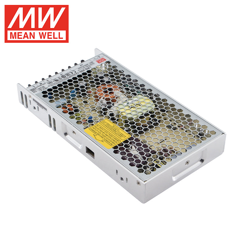 The Mean Well LRS-200-12 is a high-performance 200-watt enclosed switching power supply designed to deliver substantial 12V DC power at up to 16.7A for demanding commercial and industrial applications. Engineered for reliability, this unit features a universal 85-264VAC input, high efficiency up to 89%, and a robust fanless metal enclosure, ensuring silent operation and effective heat dissipation. With full international safety certifications (UL, TUV, CB, CE) and comprehensive protections including overload, over-voltage, short circuit, and over-temperature, the LRS-200-12 provides stable and clean power for high-current 12V systems. It is an ideal power source for large LED displays, high-density storage servers, industrial computing, powerful audio systems, and intensive telecommunications equipment.