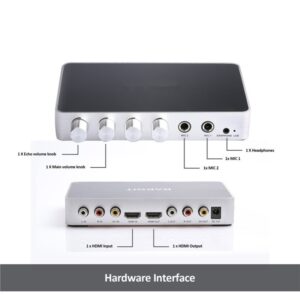 Bonus Music Volume Adjustment – karaoke hdmi mixer support mix audio from 2 different microphones and allow to adjust music volume, echo, individual microphone volume, meanwhile, offer you a superior stereo audio quality.