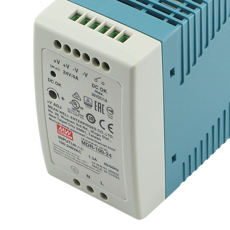The MEAN WELL MDR-20-12 is a compact and reliable 20-watt DIN rail mount power supply, delivering a stable 12V DC output at 1.7A for small-scale industrial control and automation applications. Part of the space-saving MDR series, this unit is engineered for efficient installation in control panels and enclosures with limited space. It features a universal 85-264VAC input, high efficiency, and a fanless design for silent, maintenance-free operation. With essential global safety certifications (CE, cULus) and built-in overload and short circuit protection, the MDR-20-12 provides dependable power for PLC I/O modules, sensors, relays, small displays, and other 12V control devices.