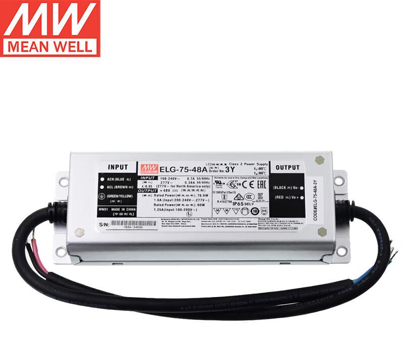 | ELG-75 | 60-76.8W | Up to 90% | -40°C to +85°C | 180 × 63 × 35.5 mm | ~0.8kg | 12V/5A, 24V/3.15A, 48V/1.6A |