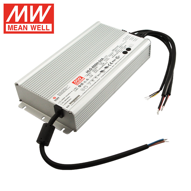 MEAN WELL HLG-600H-24A: An industrial 600W 24V constant voltage/current LED driver (non-dimmable). IP65/IP67, high efficiency, 7-year warranty. The ultimate fixed-output power source for giga-scale industrial, warehouse, and stadium lighting.