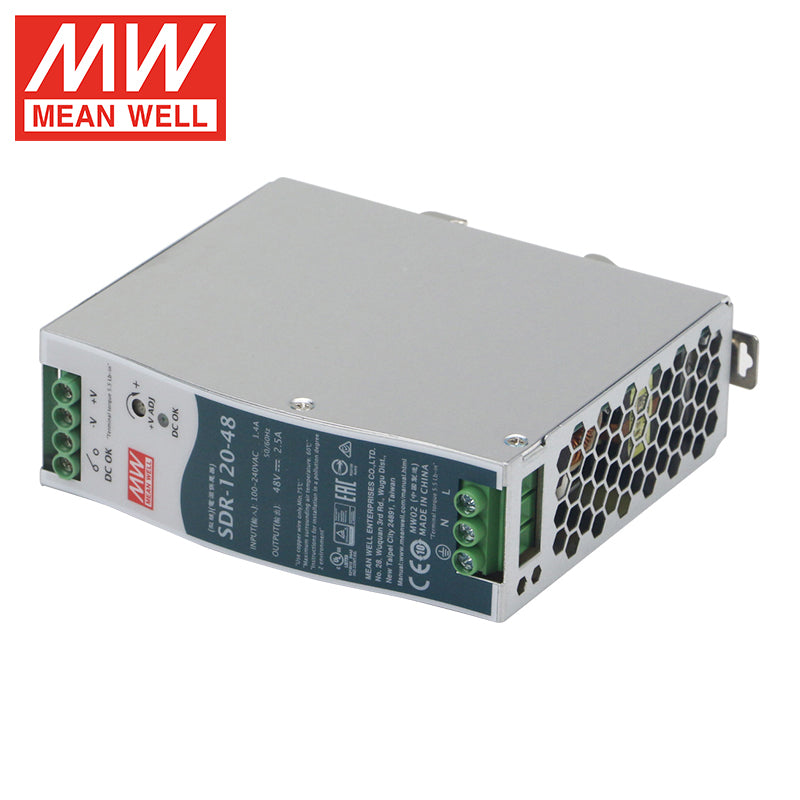 The MEAN WELL SDR-120-48 is a high-performance 120-watt enclosed switching power supply, engineered to deliver a stable and efficient 48V DC output at 2.5A for demanding industrial and telecommunications applications. Part of the reliable SDR series, this unit combines robust power delivery with a compact design. It features a universal 85-264VAC input, high efficiency up to 91.5%, and a fanless metal enclosure for silent, maintenance-free operation. With full international safety certifications (UL, TUV, CB, CE) and comprehensive protection against overload, over-voltage, short circuit, and over-temperature, the SDR-120-48 is an ideal power source for industrial control systems, Power over Ethernet (PoE) switches, professional audio/video equipment, high-power LED installations, and telecommunications infrastructure.